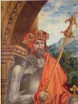 Nie musimy szukać Podobieństwa tego króla na zwornikach, gdyż zachowały się jego 2 portrety Direra Dziada, w tym w Luwrze jako Karola Wielkiego, który jako Zbawca Francji wisiał w parlamencie paryskim. Twarz na tym zworniku jest całkowicie RÓŻNA od Uśmiechniętego Kazimierza na zworniku wawelskim, który jest Kazimierzem II, podobnym do Dumy Niemiec na hermie Karola Wlk, od której Czarnych Orłów ma pochodzić Niemiecki Jastrząb.